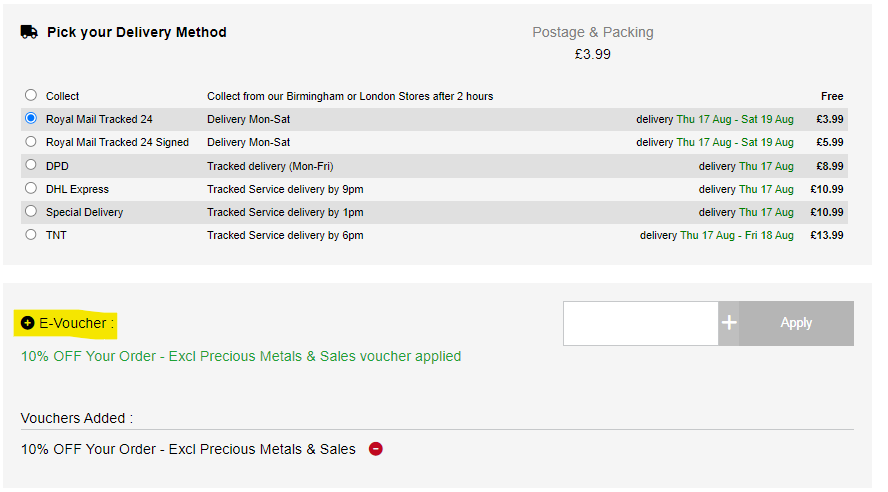 Below the delivery options section you will see the E-Voucher section