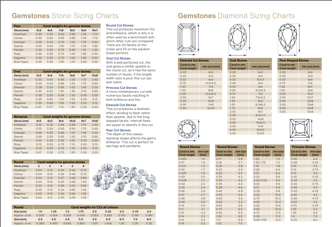 Check out our gemstone sizing chart by downloading our technical guide below which also includes our polishing guide, metal gauge conversion chart and more.
