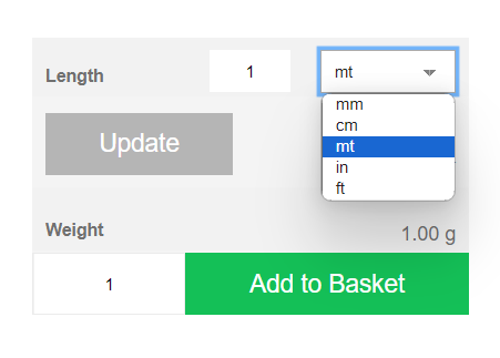 Choose your measurement and type in your requirements and click Update. When the page refreshes - the measurement will present as your selection in MM