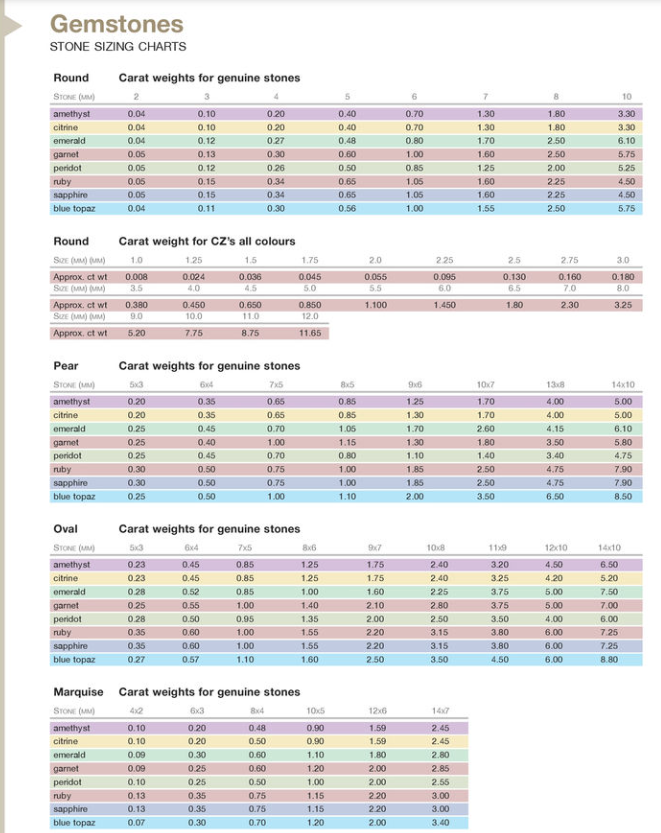To find out the dimensions of our gemstones please see the chart provided,