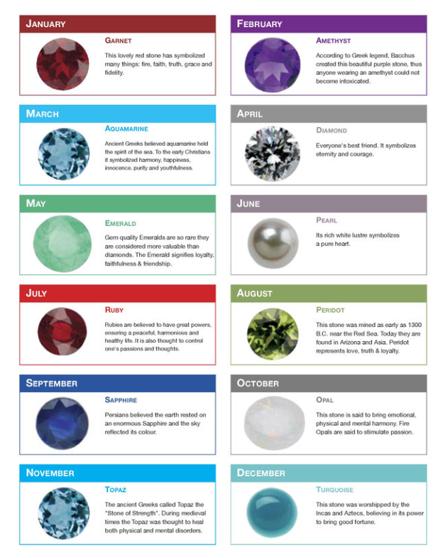 Want to make birthstone jewellery but not sure what gemstones correlates to each month? Here is a quick guide: